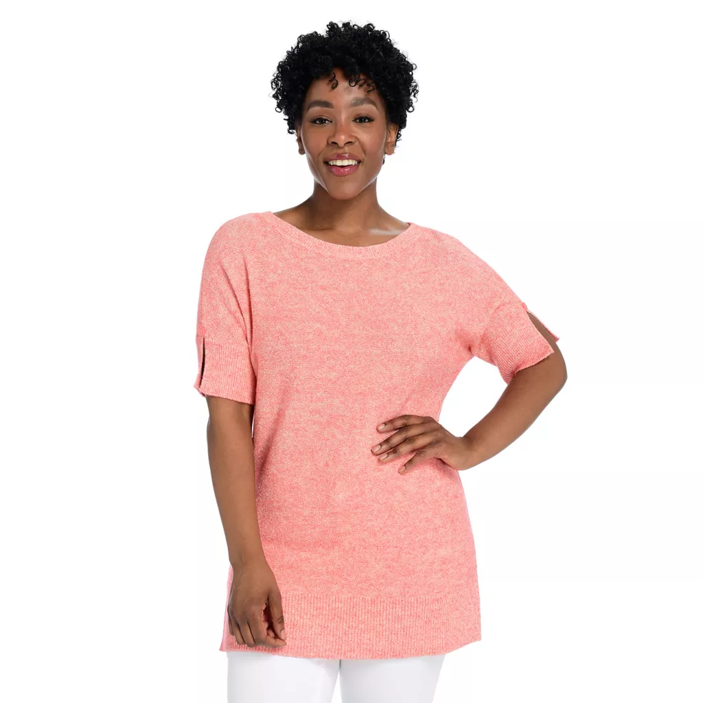 Marled yarn technique creates dimensional color with a slightly unique pattern on every top. The slits on the sleeve opening with a cute button and side slits on the hem provide extra space and easy movement. Ribbing details add stretch while keeping your top in place!