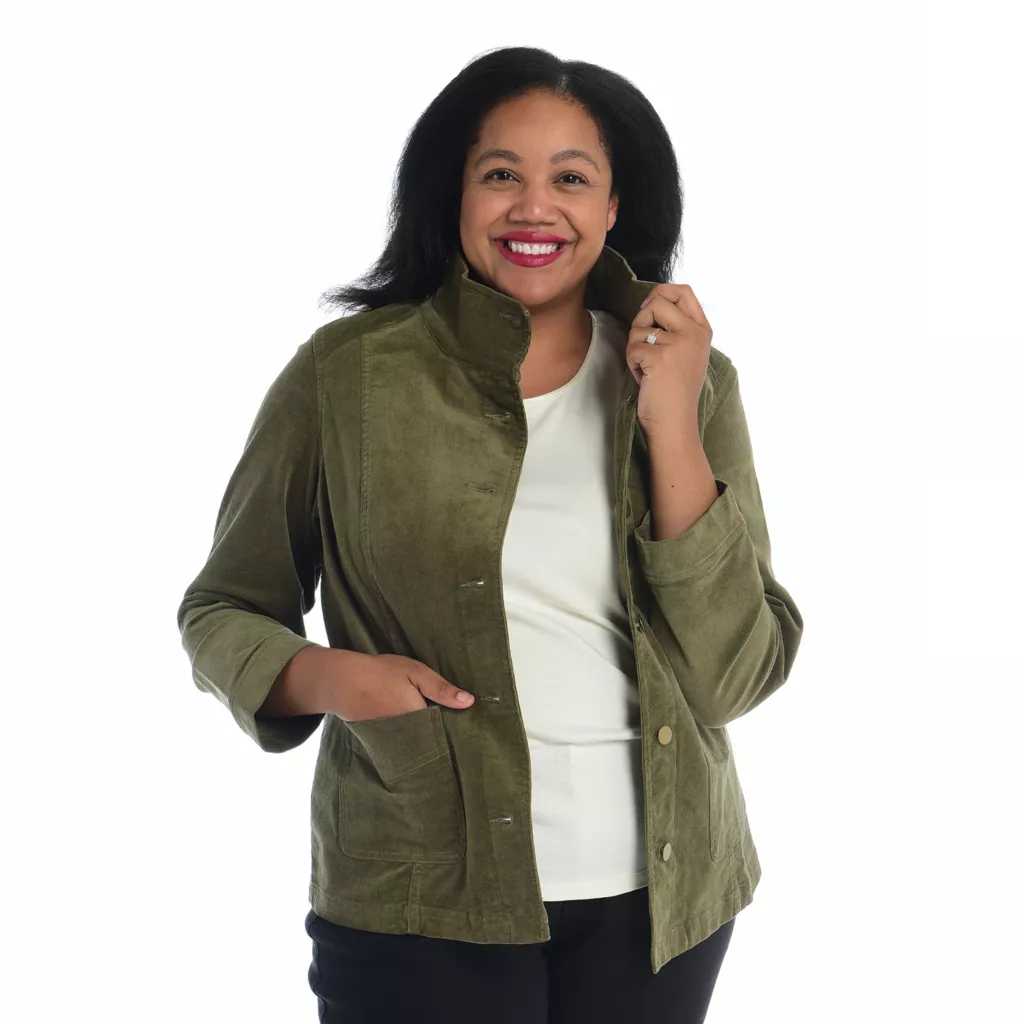 Our Seamed Corduroy Button Front Jacket is a fusion of elegance and comfort. The meticulously designed seams contour your figure, while the soft corduroy fabric adds a touch of luxury. The button-front closure and classic collar exude timeless sophistication. Elevate your style effortlessly, whether it’s a casual outing or a cozy evening.