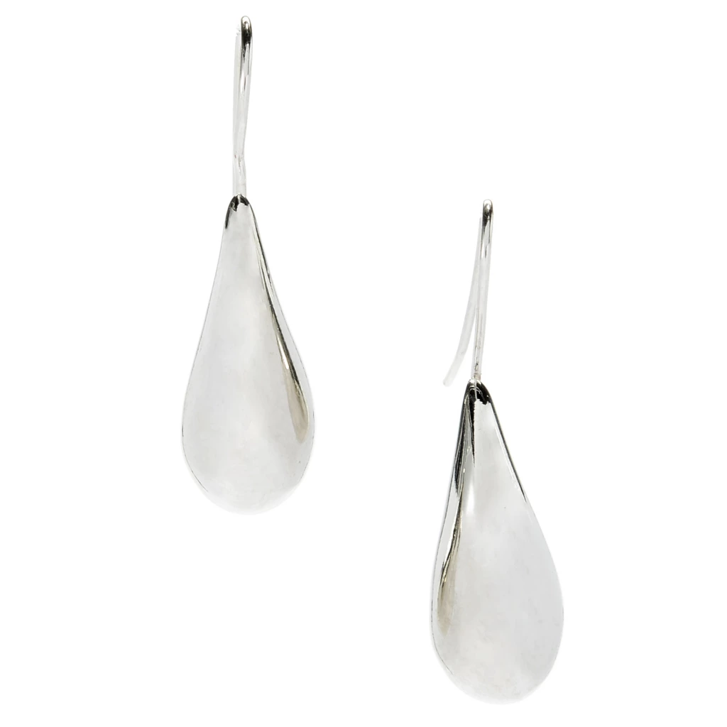 Add some shine to your look in these forward-facing metal-toned earrings in unique teardrop shapes that add something special to your occasion dresses and office-ready outfits. Â